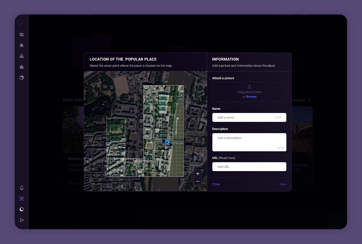 Ventana para crear un nuevo lugar popular.